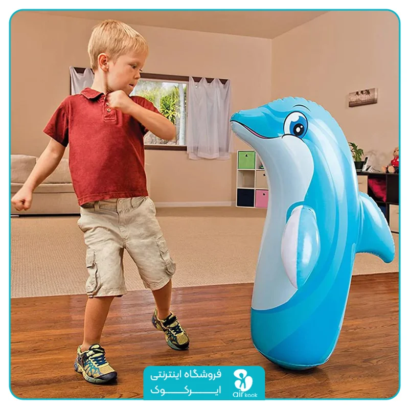 - طراحی جذاب دلفین: این کیسه بوکس بادی به شکل یک دلفین دوست داشتنی و شاد طراحی شده است که باعث می شود کودکان با آن ارتباط برقرار کرده و به آن علاقه مند شوند.