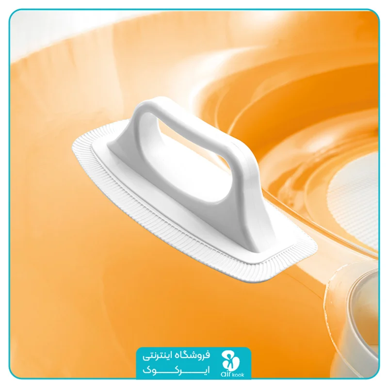 این محصول دارای سه ویژگی مهم میباشد. اول اینکه در دو طرف محصول 2 دستگیره به رنگ سفید تعبیه شده است. شما از این دستگیره ها میتوانید برای حمل آسان تشک شناور روی آب استفاده کنید و یا اینکه با گرفتن این دو دستگیره تعادل خود را توی استخر حفظ کنید.
