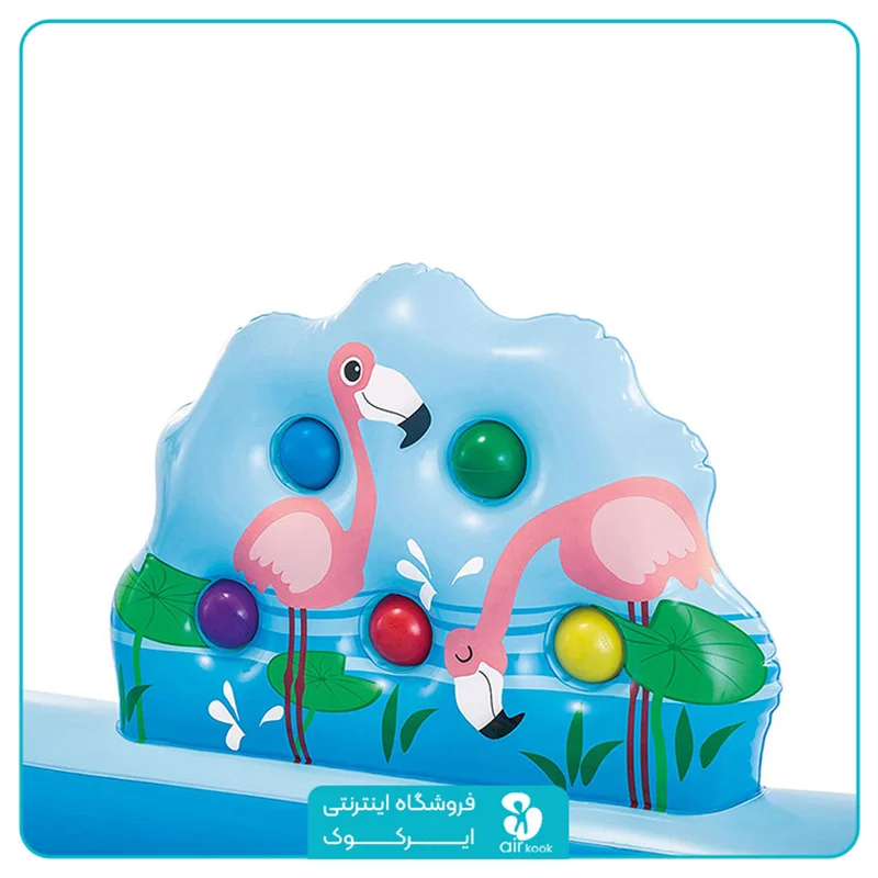 همراه این استخر، توپ رنگی و حلقه بادی برای پرتاب روی هدفهای مشخصی نیز وجود دارد. با استفاده از این توپها و حلقه کودک میتواند همراه بازی و تفریح، تمرین هدفگیری انجام دهد. یک هدف به شکل فلامینگو روی دیواره استخر وجود دارد و یک جایگاه مخصوص برای پرتاب توپهای رنگی. یک عروسک بادی شکل میمون و دو عروسک بادی با طرحهای شیر دریایی و تمساح هم همراه این استخر ارائه میشود تا به جذابیتهای ظاهری استخر اضافه کند.