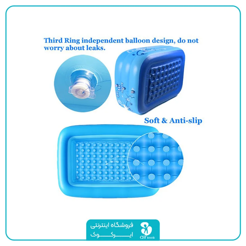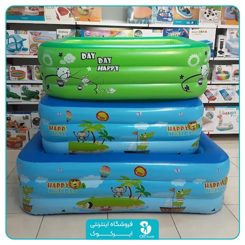 یکی از ویژگیهای منحصربهفرد استخر بادی سامر تایم، شکل مستطیل بزرگ با طول 150 سانتیمتر است. این اندازه بزرگ، آن را برای بازی چند کودک ایدهآل میکند تا بتوانند با هم در آب لذت ببرند و بازی کنند. عمق کم این استخر برای کودکان کوچک مناسب است و تجربهای ایمن و لذتبخش تحت نظارت بزرگسالان فراهم میکند. همچنین این استخر دارای دو رنگ آبی و سبز است که میتوانید بنابر نیاز و سلیقه خود، اقدام به خرید هر کدام از آنها کنید.