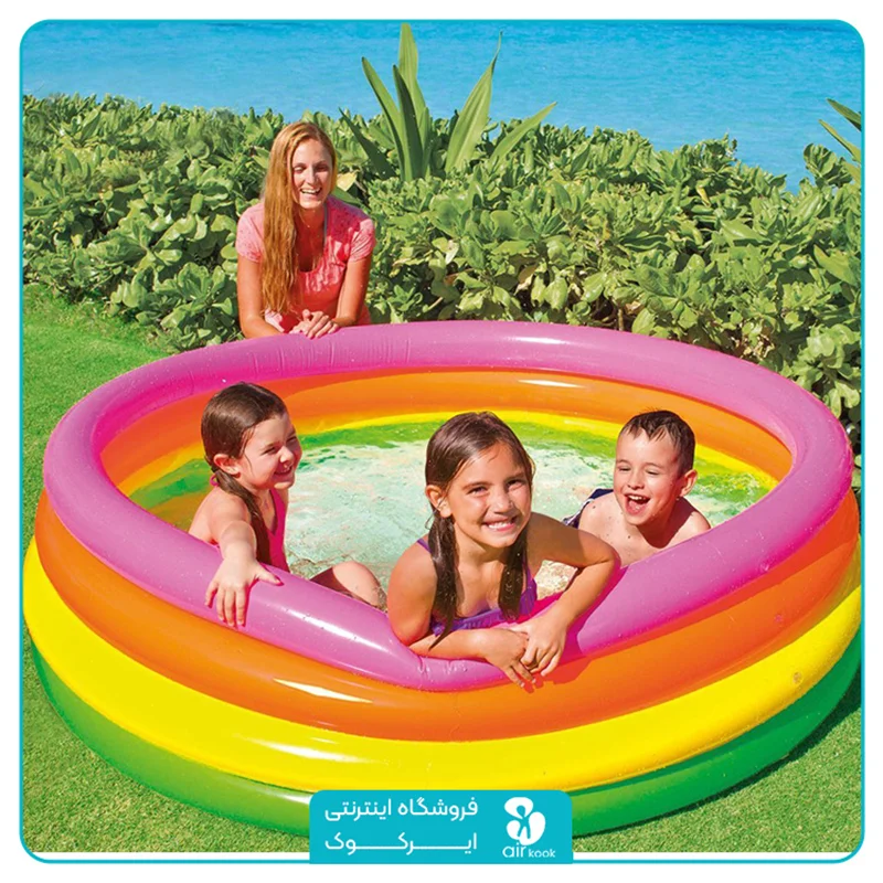 استخر بادی حلقه ای اینتکس کد 56441 با رنگ بندی شاد و جذاب همانند رنگین طراحی شده و هم برای پسران و هم برای دختران جلب توجه میکند. استخر بادی اینتکس از استخرهای بزرگ این شرکت به شمار میرود. شما میتوانید با تهیه این محصول اوغات خوشی را خصوصا در تابستان برای کودکان خود ایجاد کنید.