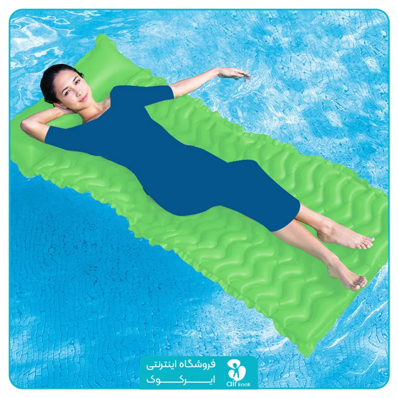 همچنین در قسمت بالایی تشک، بالشتی متصل به بدنه و به صورت شیبدار قرار دارد. زاویه بالشت به گونهای است که سر و گردن را در وضعیت خوبی قرار میدهد و شما احساس خوبی خواهید داشت. از این مدل تشک میتوانید در آب های آرام مثل دریاچه رودخانه و البته استخر، حداکثر استفاده را بکنید.